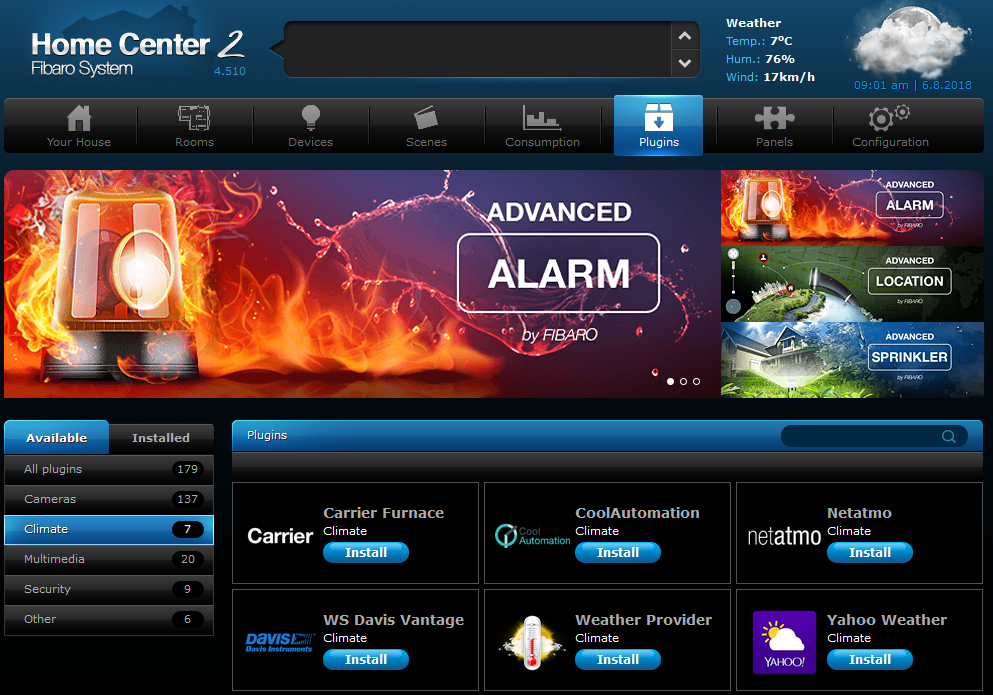 To integrate CoolMasterNet bridge with Fibaro HC2 you’ll need to install Fibaro PlugIn for CoolMaster -> From the tab ‘Plugins’ select Climate(Tab Available) ->CoolAutomation