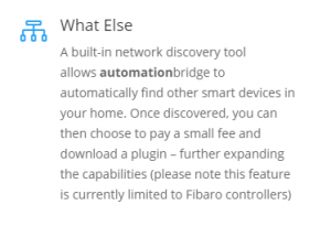 Automationbridge is designed to work with the Fibaro Home Center, Fibaro Home Centre Lite, Vera Edge/Plus/Secure & Homey Z-Wave Gateway Controllers.